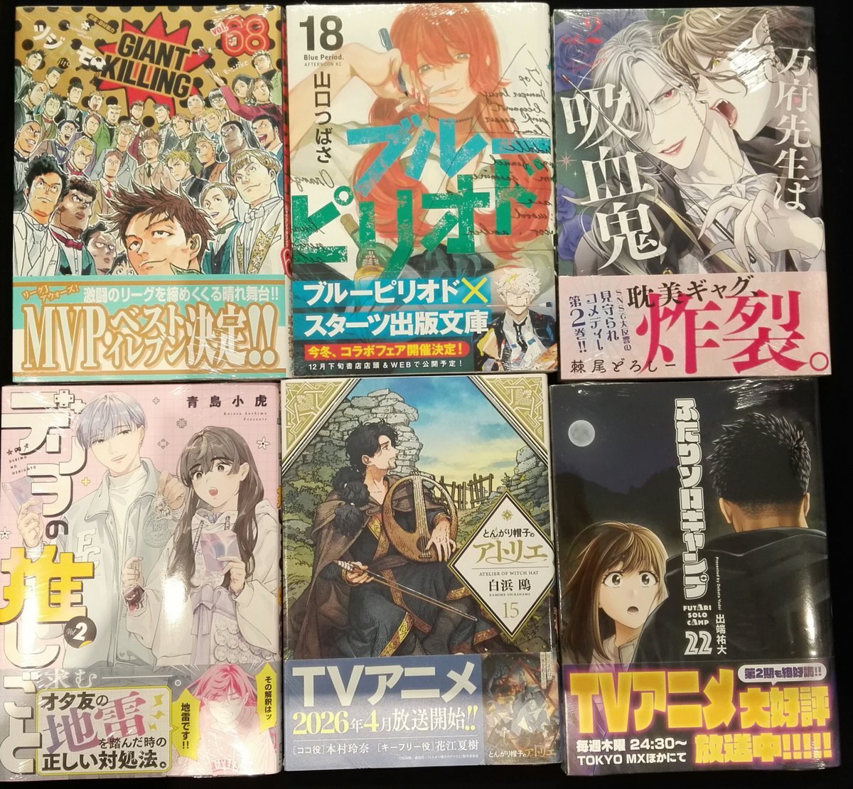 【BOOK入荷情報①】 「GIANT KILLING68巻」 「ブルーピリオド18巻」 「デリヲの推しごと2巻」 「歌舞伎町カラオケ店員としくにさん」 「とんがり帽子のアトリエ15巻」 「織田ちゃんと明智くん5巻」 「塔の管理をしてみよう27巻」 「境界のメロディ1巻」 「好きと言うにはまだ幼い1巻」 pic.x.com/dEHWpOQncN