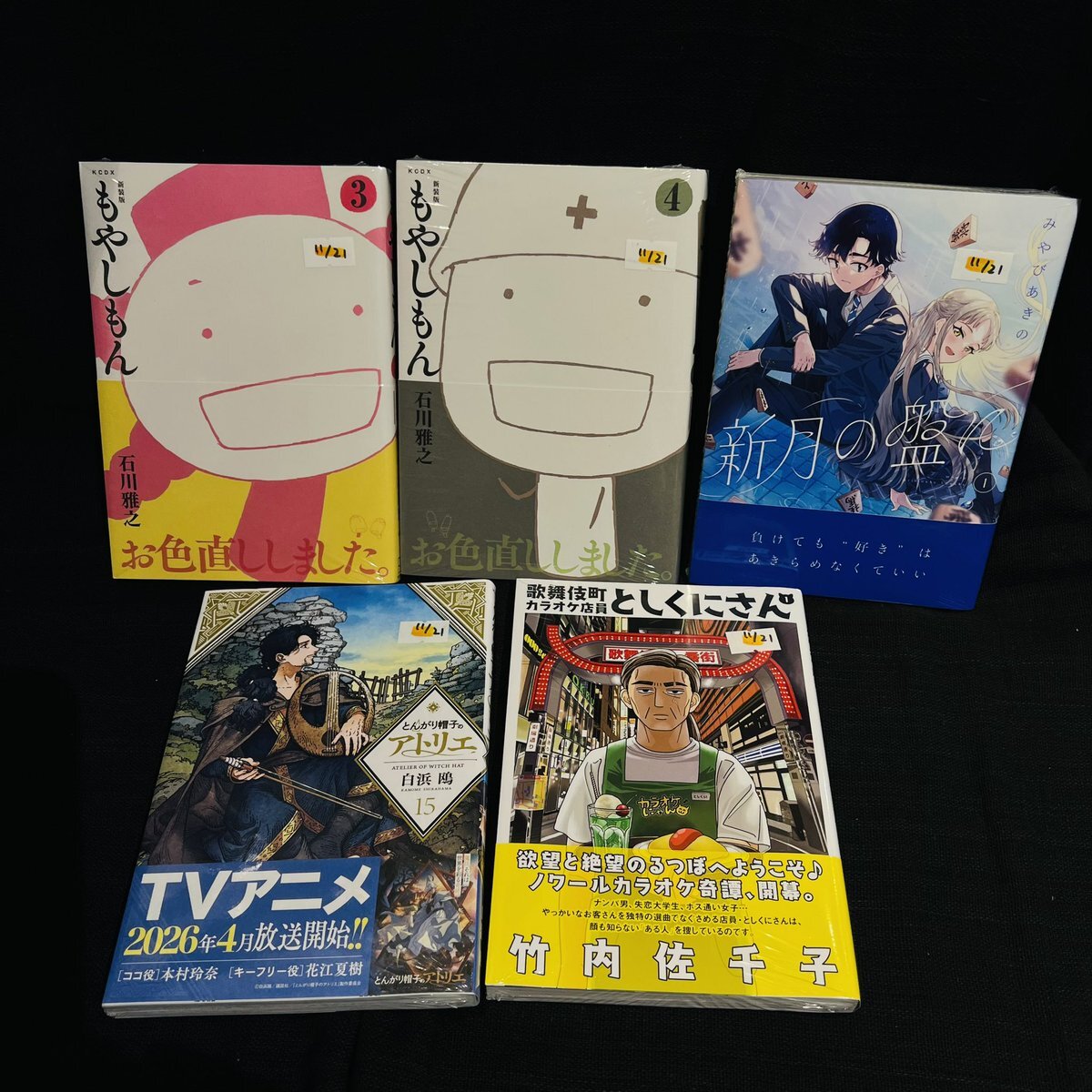 \#講談社 青年向け新刊コミックス入荷‼️/ 11/21発売⭐️その⑤( ˙꒳˙ )b #新装版 もやしもん 📺TVアニメ2026年4月放送開始‼️ #とんがり帽子のアトリエ #GIANT KILLING #デリヲの推しごと 担当📚推し新刊✨️ #歌舞伎町カラオケ店員としくにさん 「戦場と食」物語、完結。 #鉄血キュッヒェ …etc‼️ pic.x.com/naJMsncdRB