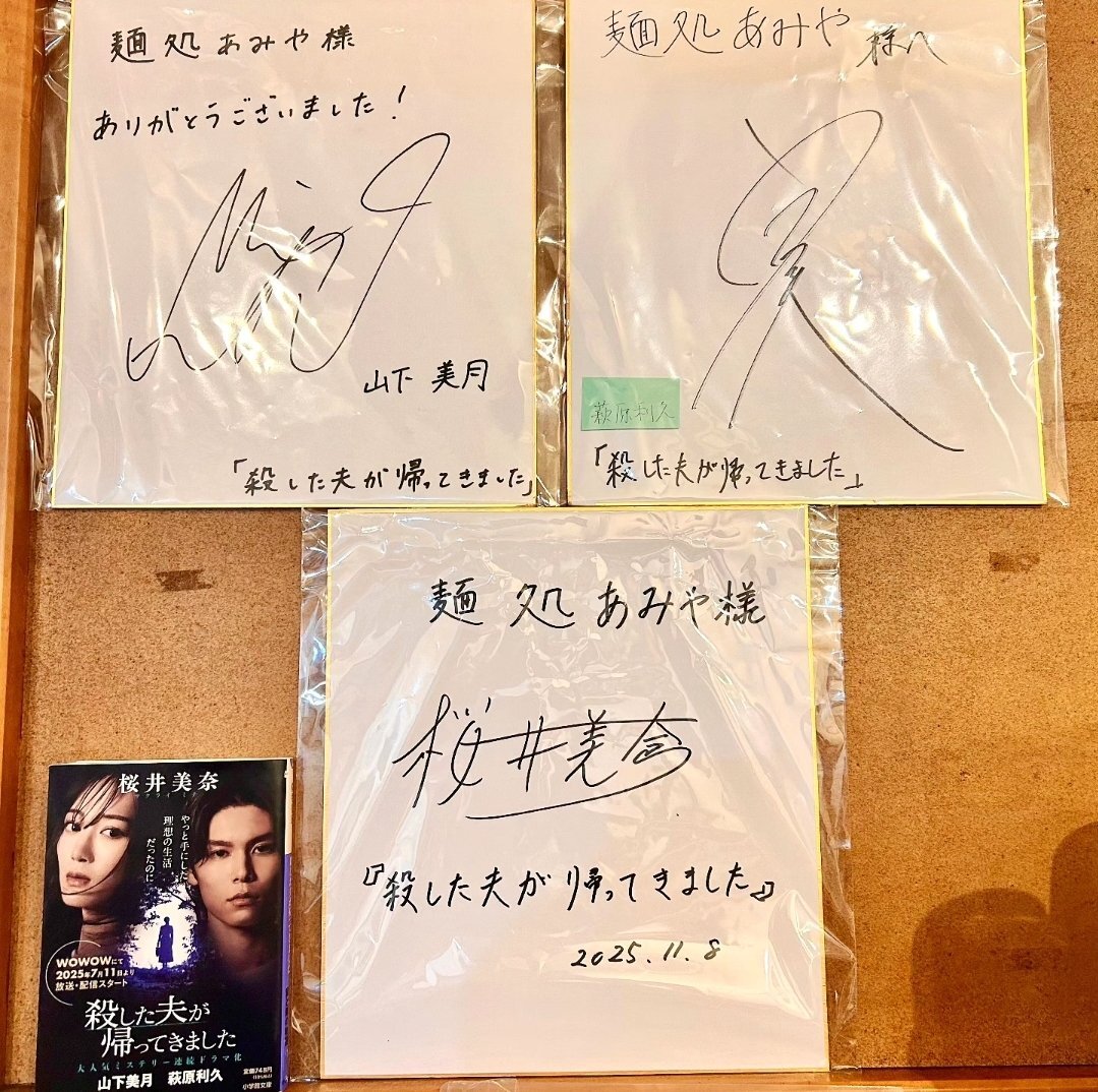 当店で撮影されたシーンが流れたドラマ 『殺した夫が帰ってきました』 の原作者である桜井美奈さんが先日ご来店してくださりました! 気さくにお話したり、サインも快く書いていただけました! #殺した夫が帰ってきました #桜井美奈 #山下美月 #萩原利久 #サインも原作本もありがとうございました pic.x.com/UMbab7bu38