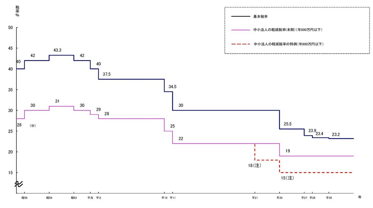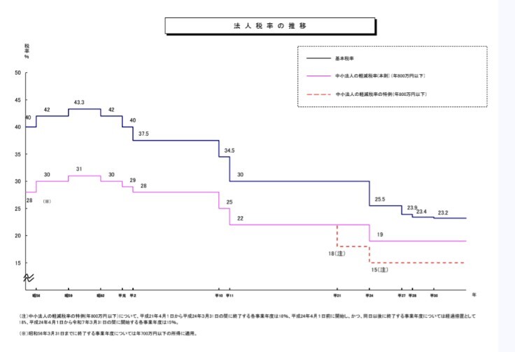 #法人税 30年前の法人税率は大企業は37.5%、中小企業は28%だったが、現在は大企業は23.2%、中小企業は19%❨特例は15%❩と税率は低下しているので単純比較は物価を度外視したとしても出来ない。 x.com/bunnykoujou/st… pic.x.com/7EmWPvlWnu