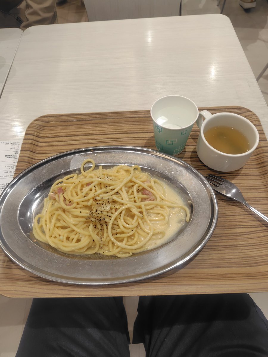 浦和美園 EGGBOMB 男のカルボナーラ 仕事終わりに友人とプレデターを観に浦和美園のイオン☺️ 映画まで1時間ちょいあるので腹ごしらえ😁 友人はナポリタン☺️ 男のカルボナーラはにんにくが効いてて美味い🤤 いつものクセでラーメンと混同してしまい麺量は200で注文😅 300でも良かったかな😓 pic.x.com/oBf7jGGchO