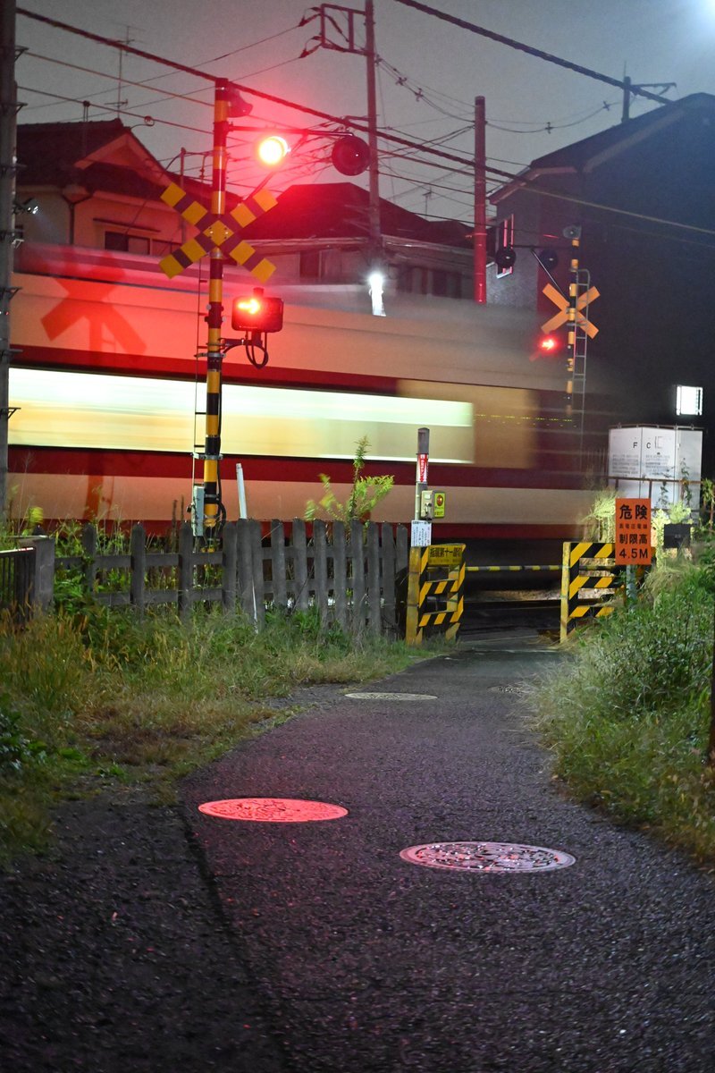 2025.10.19 E653系 K70編成 特急『海浜公園コキア川越号』 西大宮—指扇間にて 夜の帳が下りている沿線での撮影 以前からちょっとやってみたかった構図で挑戦してみた 夜の住宅地にある見慣れた小さな踏切を 見慣れぬ国鉄色の特急が家路を急ぐ pic.x.com/gjFBurrum8