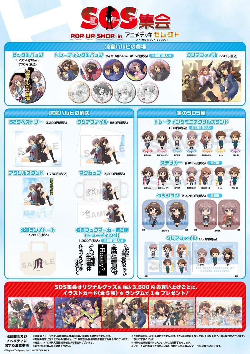 @1代行 涼宮ハルヒの消失 アニメデッキセレクト SOS集会 POP UP SHOP MOVIX伊勢崎 に 譲➡️定価+送料(+代行費) 求➡️涼宮ハルヒの消失クリアファイル、アクスタ 都内手渡しor郵送 検索からもお気軽にお声がけください🙇🏼♂️ pic.x.com/xlTjhB0Rv0