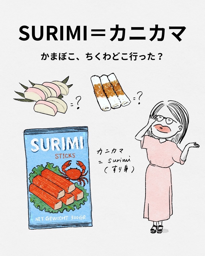 スリミーー! 漫画家のかわかみじゅんこさんが、エッセイ『パリパリ伝説』のなかで、練り物をヨーロッパに持ち込んで商品化した方と話す機会があって。 そのなかで「名前をSURIMIにしたのは、原材料の1番前に書かれていたのが『すり身』だったから」って伺ったってエピソード思い出した〜! x.com/mushokoat/stat…
