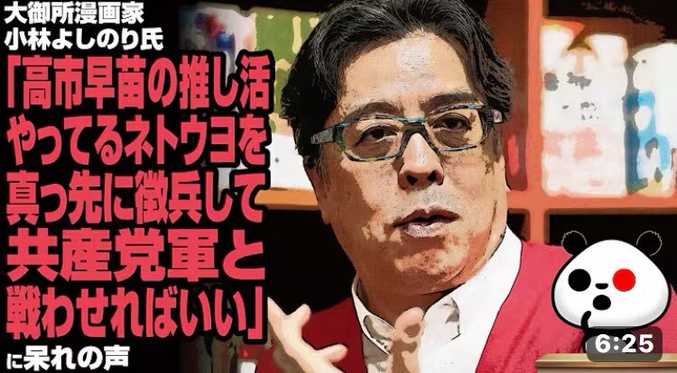 大御所漫画家・小林よしのり氏「高市早苗の推し活やってるネトウヨを真っ先に徴兵して、共産党軍と戦わせればいい」に呆れの声 youtu.be/Li3cTGYKM1w?si… @YouTubeより pic.x.com/h070iZzRFj