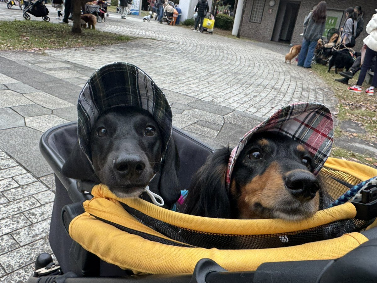 ユメジ散歩 昨夜はお知り合いの古希のパーティー🎉で ドッグランの動画出せませんでした🙇🏼♂️ 今日は潮風公園で行われた「ワンワン フェスティバル」でピンクのツナギ買って仕舞いました😊 pic.x.com/UNX1U2VjuU