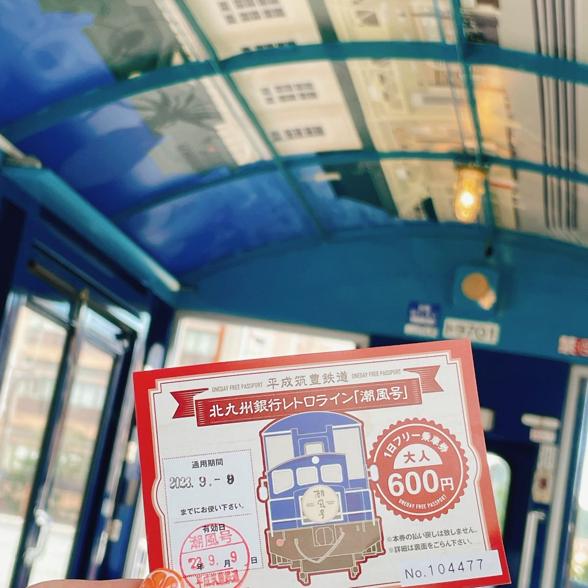 2年前、北九州銀行レトロライン「潮風号」に乗ったのですが、とても素敵ですね✨ トロッコに乗るのも新鮮でしたし、景色も綺麗で素敵な思い出になりました。 トンネルの時の天井に絵が浮かび上がるのも綺麗でした🐟 #県イチショー #KPF2025 pic.x.com/zWIivZSM2E