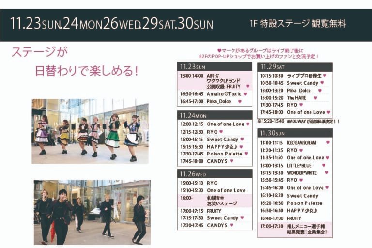 【Pirka_Dolceライブ出演】 #ぴりどるライブ ★アイ博♡ in Moyuk SAPPORO★ 「Moyuk SAPPORO」さんで行われるイベント🐧 アイドルステージに出演させて頂きます🎤 日程:11月21日(金) ~ 11月30日(日) 時間: 日程により異なります 会場:Moyuk SAPPORO 1F特設ステージ 料金:観覧無料