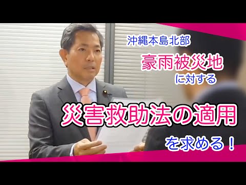 私も要請や現地に何度も足を運ばせてもらい住民の声を国会へ届けました。 24.11月の #沖縄本島北部豪雨災害 を巡っては #災害救助法 は適用されず #局地激甚災害 の指定となりました。24.12.3の衆議院本会議場でも総理へ窮状を伝え支援を呼び掛けました。続けてご覧下さい。 youtu.be/uXmQ0B_YC4I?si…