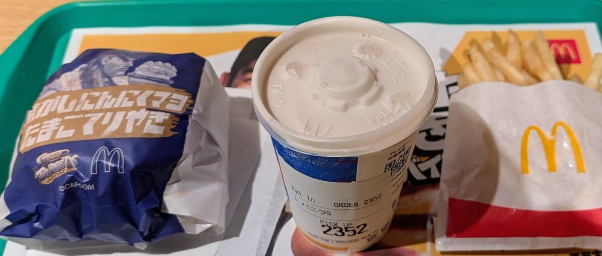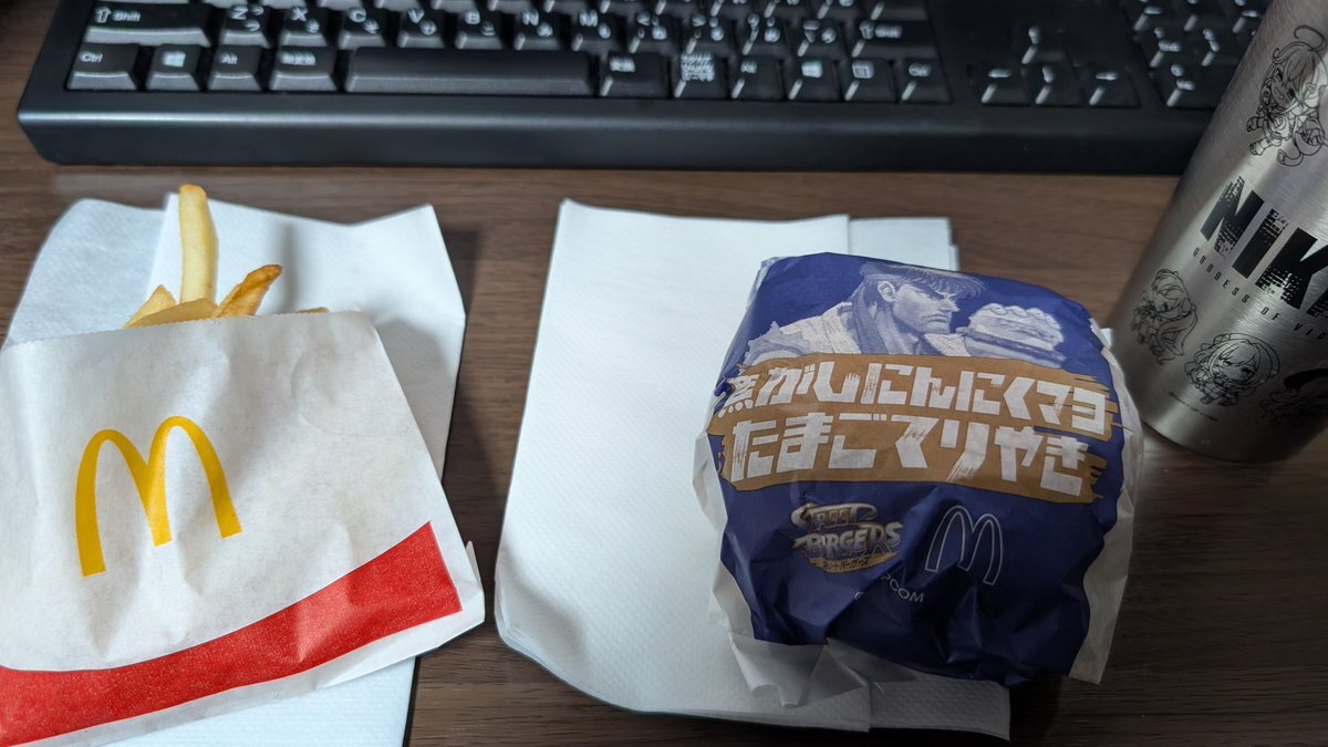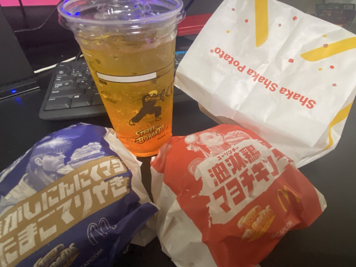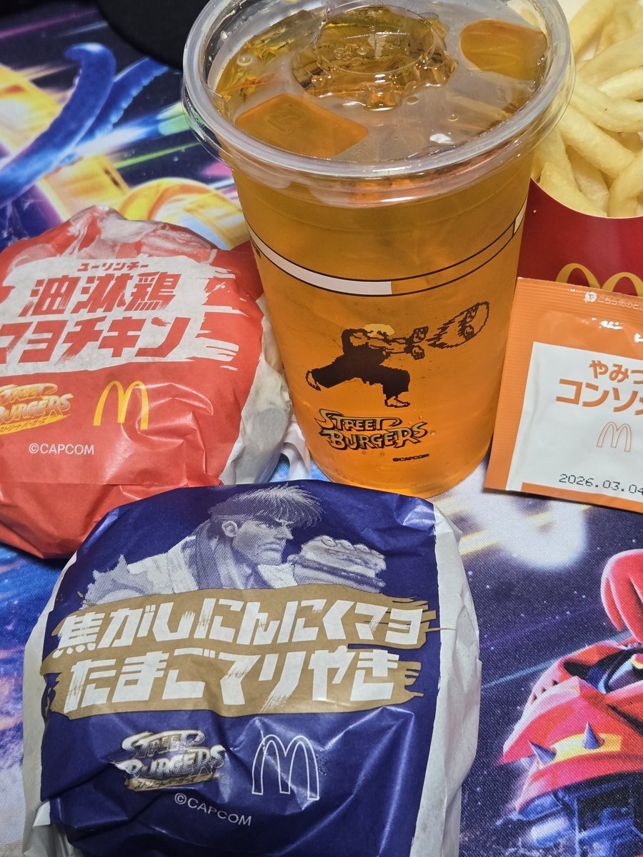 10月22日から〜マックの期間限定のストリートファイターコラボ🎵焦がしにんにくマヨたまごてりやきは、てりやき好きにいいべ〜🤔油淋鶏マヨチキンは、中華油淋鶏って感じで普通に😁やみつきコンソメ味のフライドポテト美味かったべ😋 マックフィズみなぎるエナジーいいべ🤙 #マック #マクドナルド pic.x.com/ptPv48LhtV