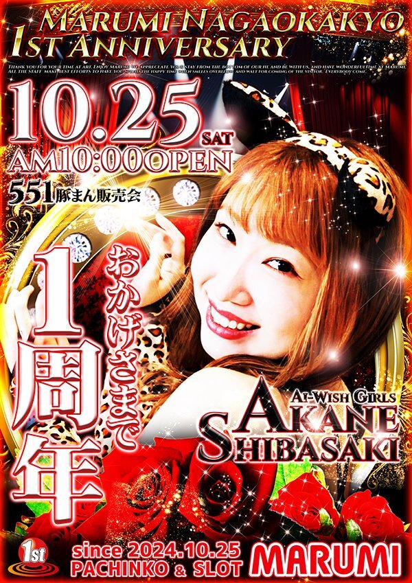 1周年迄・・・後ちょっと!! 『入場抽選会9:30』 『応援来店&551販売会』←New 芝崎あかねさん応援来店で登場♪ 551の販売会も周年特別verで開催されるみたいです! お楽しみに!! おまけで MARUMI 焦がしにんにくマヨたまごてりやき波動撃つ当店のロゴプレゼント!! pic.x.com/Qk3K3xwJcg