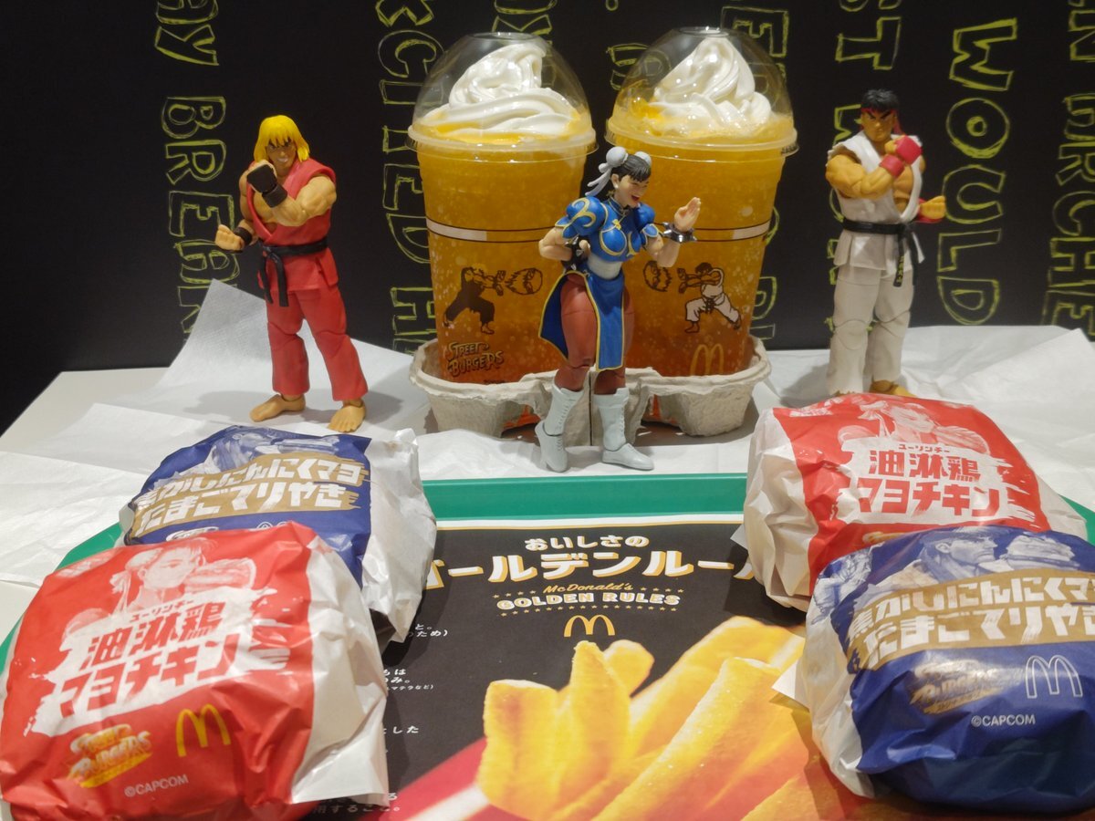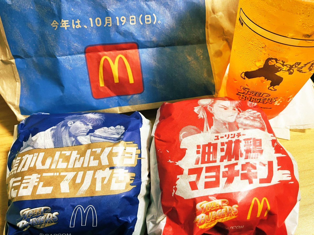 マクドナルドのストリートバーガーズ! ほとんど客がいなく、すいてる時間帯に行って食べてきました。 隅っこの壁際の席で、リュウ、ケン、春麗のフィギュアとともに撮影。 #焦がしにんにくマヨたまごてりやき #油淋鶏マヨチキン おまけにマックフロートみなぎるエナジー 。 pic.x.com/Eoc9Nc0p4R x.com/McDonaldsJapan…