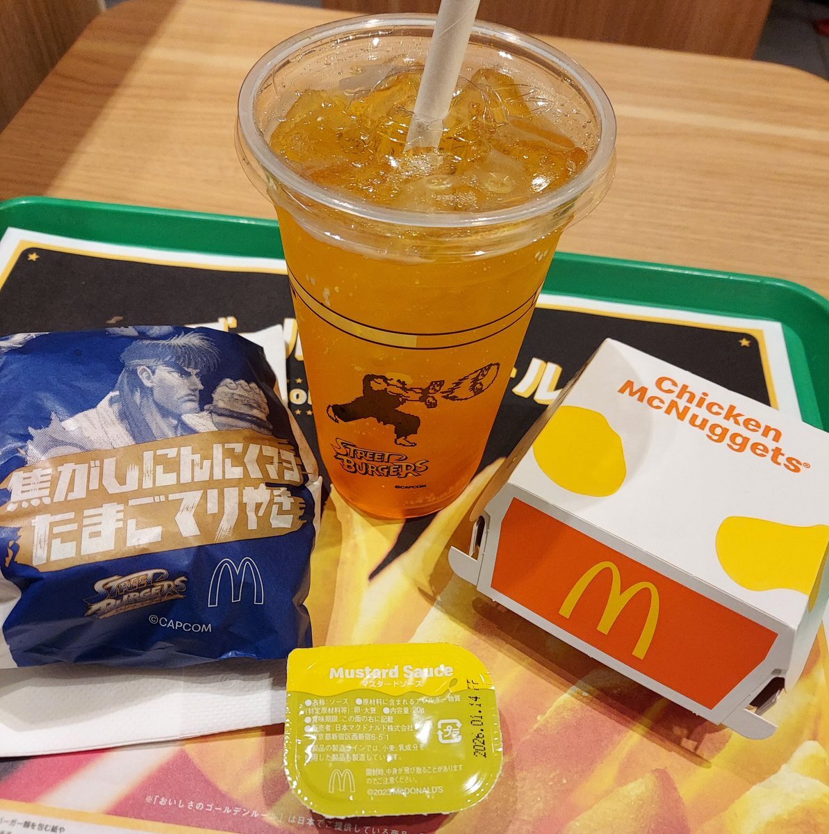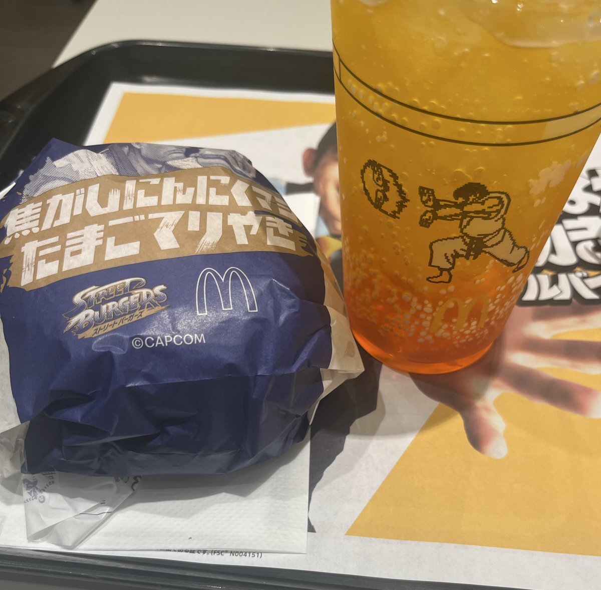 Macストリートファイターコラボのバーガーとドリンク❗️🍔🍟🥤 包み開けたらぐちゃぐちゃだったけど🤣、焦がしにんにくマヨたまごてりやきめちゃうま‼️😳😳😳 油淋鶏のは明日食べる😋😋 pic.x.com/EAjRtp31EU