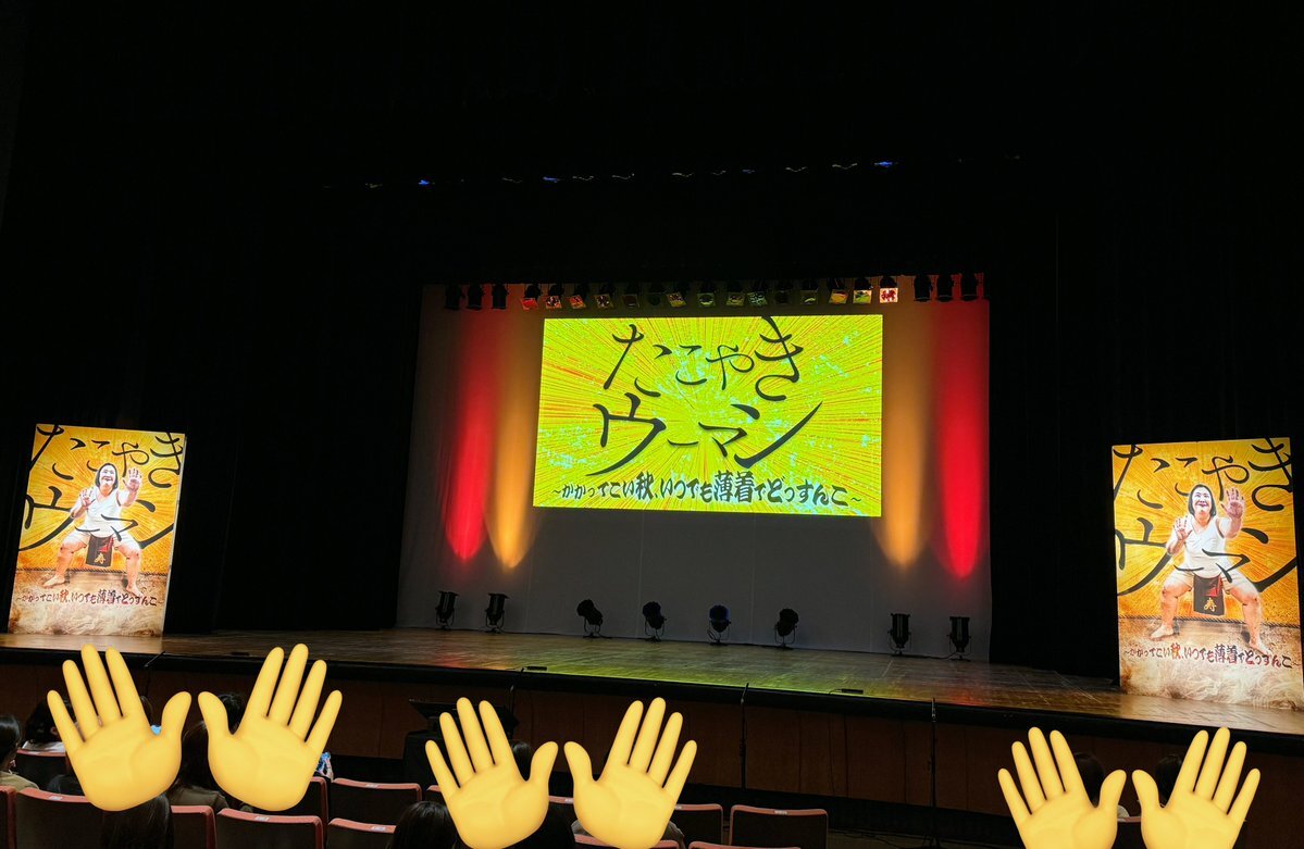 【たこやきウーマン】超楽しかった❣️ 相撲スタイルカッケー熊プロさん 空飛ぶたこ焼き楽しそすぎいなみきさん AIラップの天才阪本さん ズル剥け(まだ包帯🤕)中谷さん 4姉妹のワチャワチャずっと笑いっぱなし🥳 お客さん使ってポーズ当てるコーナーで一生「お〜!」って言い続ける一体感最高だった😂 pic.x.com/YDps27REBX