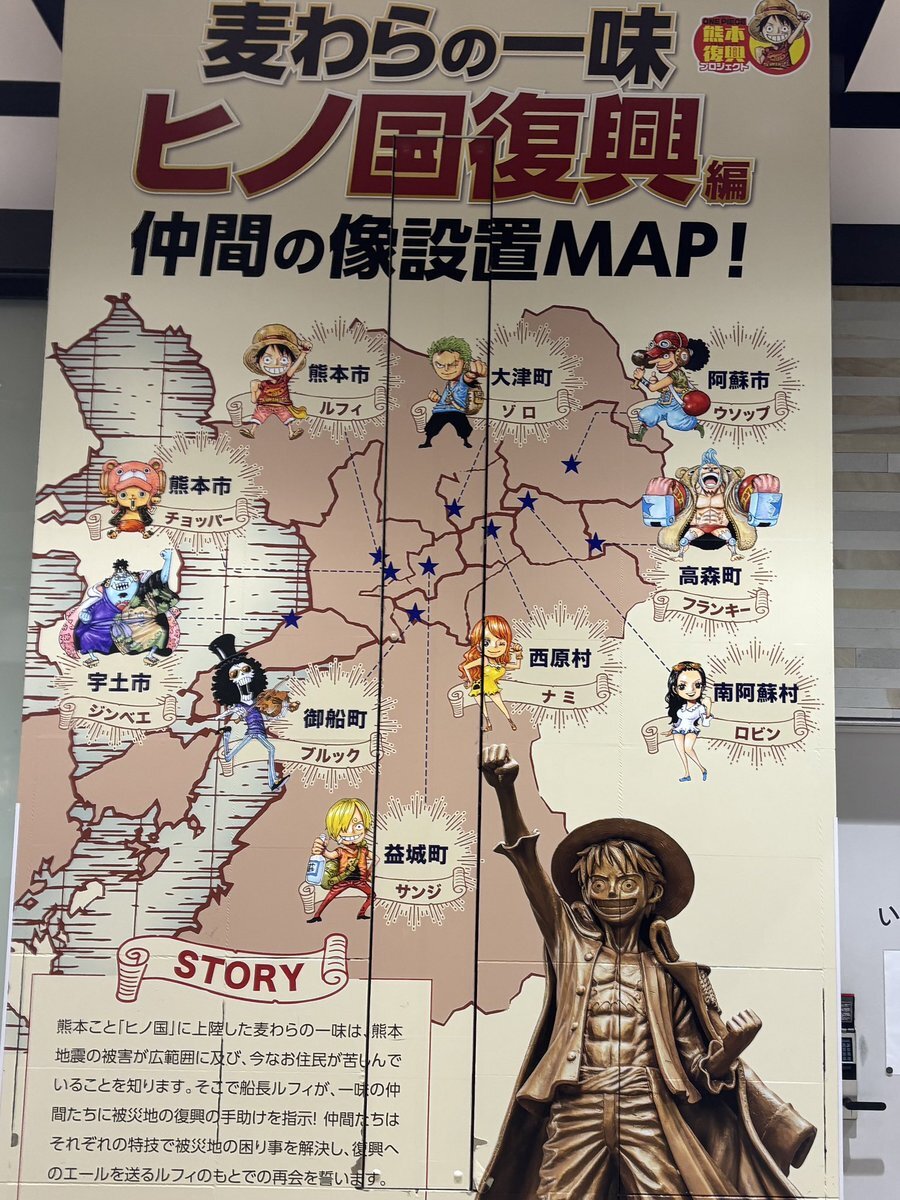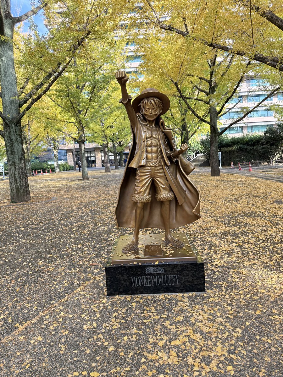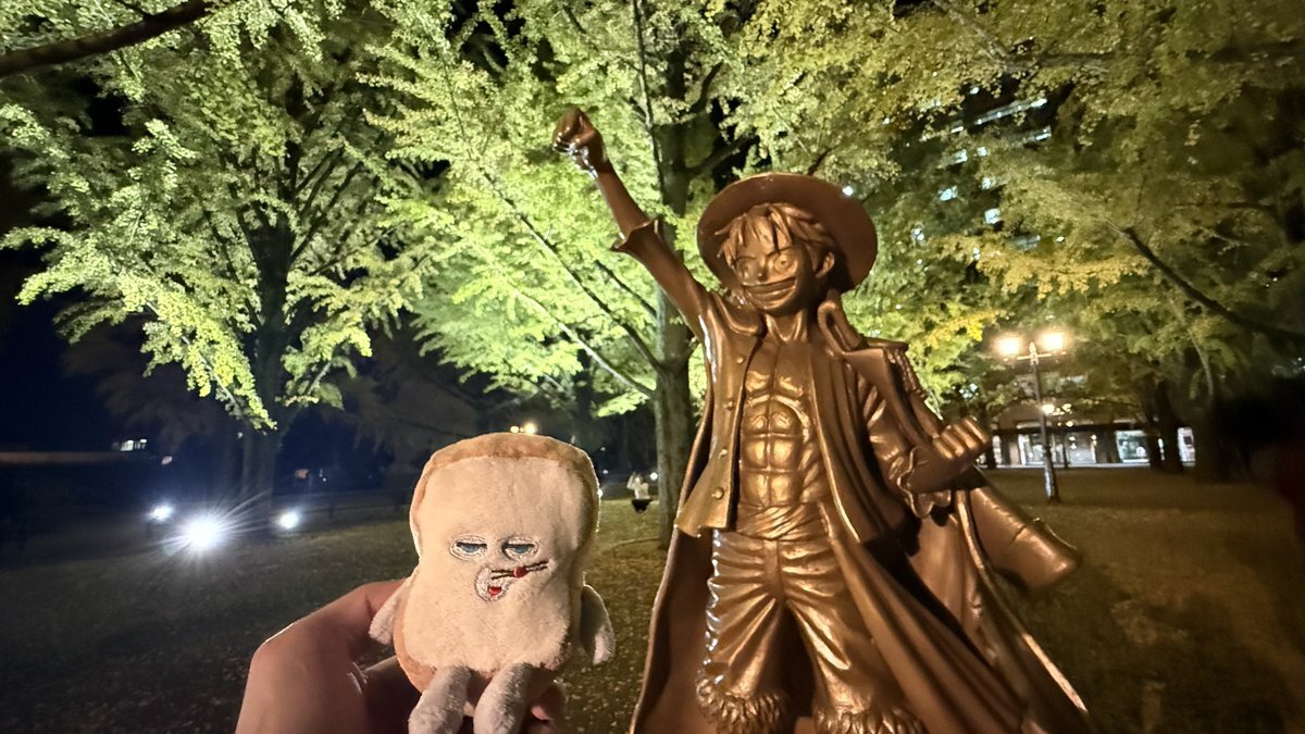 【11/14】 ●熊本県庁前のイチョウ並木 ●熊本県庁のルフィ🏴☠️ ●熊本県庁🚩県庁めぐり44件目🙌(残3) 熊本県庁前のイチョウ並木はライトアップされていてカップルや観光客で賑わってました! また、熊本県各地にはワンピースのキャラの像が建っていますがルフィが県庁前なのは初めて知りました笑 pic.x.com/ioPCGAINEO