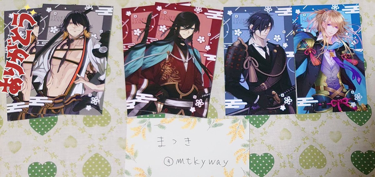 刀剣乱舞 大本丸博 交換 譲渡 譲】山伏国広 箔押しクリアカード&ポストカード 求】クリカ)燭台切光忠 身内分)加州清光/太鼓鐘貞宗 譲渡】400円/セット+送料 ポスカ:220/枚、クリカ:183/枚+送料 検索からもお気軽にお声掛け下さい pic.x.com/P2ssRcs9LA