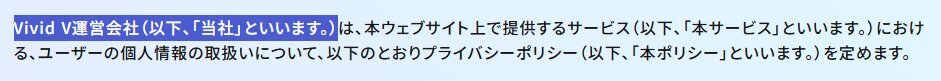 噂のVivid V、ABOUTページに会社概要が無く、プライバシーポリシーには社名じゃないものが書かれ、Shopifyの特定商取引法に基づく表記まで行かないと社名(と住所、バーチャルオフィスだけど)が分からないのは、たとえ登記していても怪しさはあるかなあという後知恵 pic.x.com/nOsbcZuB1v