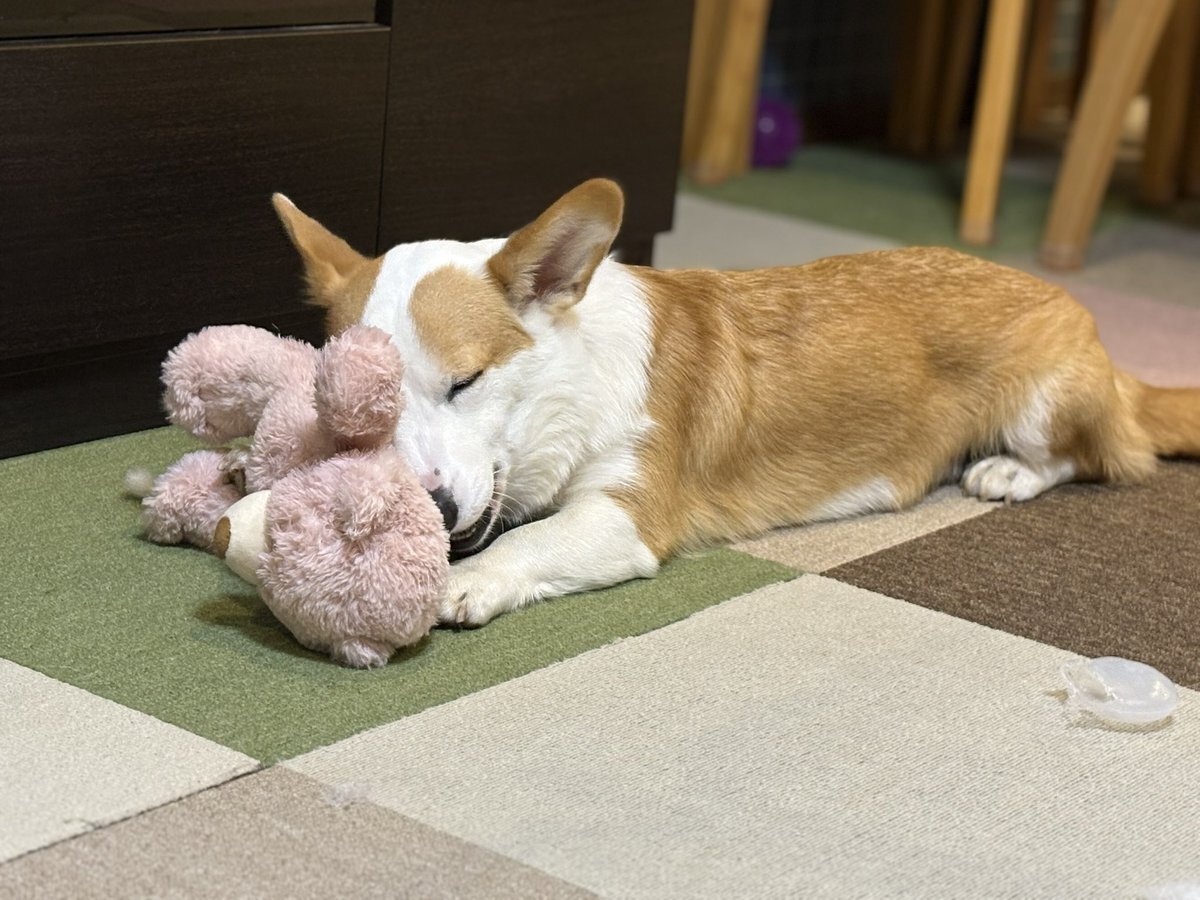 返信先:@kuromegu6うちの犬も音が鳴るおもちゃ、カシャカシャ言うおもちゃがすごく怖くて、犬用おもちゃは全滅だったのですが、最近DIFAファミリエボールというサッカーボールのおもちゃで遊んでくれる様になりました。 紙袋ビリビリとかも大好きです! 楽しそうな床にニッコリ🥰