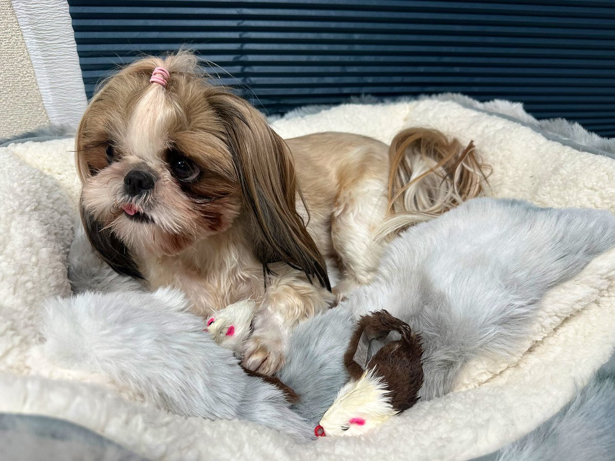 オディーのペット、ストロベリーちゃん。 だいたいよその子に懐いてたり気を許したりはしていると思う。 お世話して貰ったり、おやつ貰ったり、犬用おもちゃもらったりなでなでされたりして、なんなら飼い主居なくても((パパまたお仕事で居ないけど、優しいお姉さん達がいるし…)) と思考は持ってる