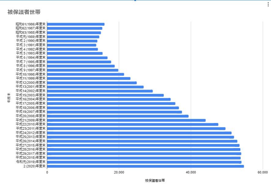 生活保護受給者数って200万人ほどもいるのか。これで1つの県を作ったら人口で上位に食い込むやんか。そんな大きな県をその他の県で養ってるってことか。