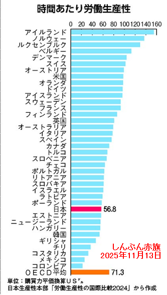 労働生産性とは、単位労働量当たりの生産量です。経済的豊かさを求めるには「より少ない労力でより多くの経済的成果を生み出すことが重要」です。 2023年の日本はOECD(経済協力開発機構)加盟38カ国中で32位と、低迷しています。 製造業が海外に移転していること、賃金の伸び悩みも要因とされます。 pic.x.com/rhEI1pkq0U