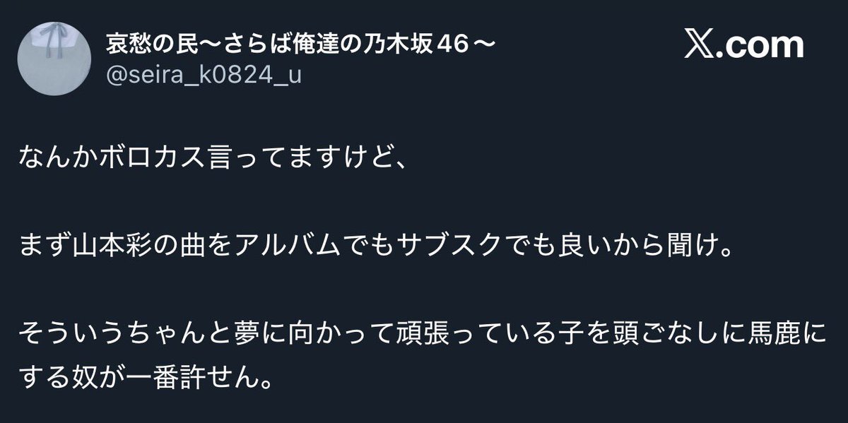 哀愁野郎は知らないようだ。 生田絵梨花がアーティスト活動をしているというお話を。 本当に夢に向かっている子を頭ごなしに馬鹿にしているのは他でもない、哀愁野郎だろうが。 x.com/lemontaste/sta…