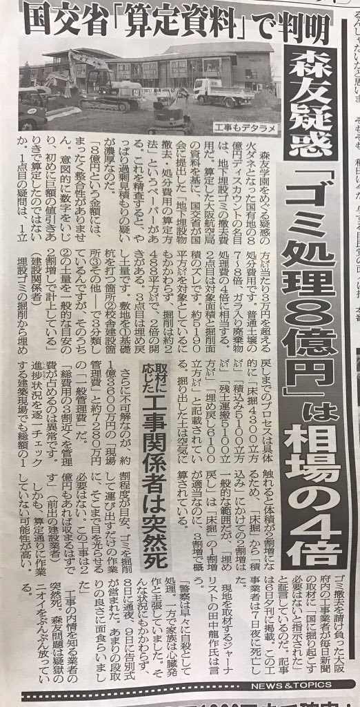 返信先:@arles3241ゴミなんて関係無いぞ 間違ってる。依頼者である籠池側が土の交換を依頼したら田中造園土木は土の全入れ替えする