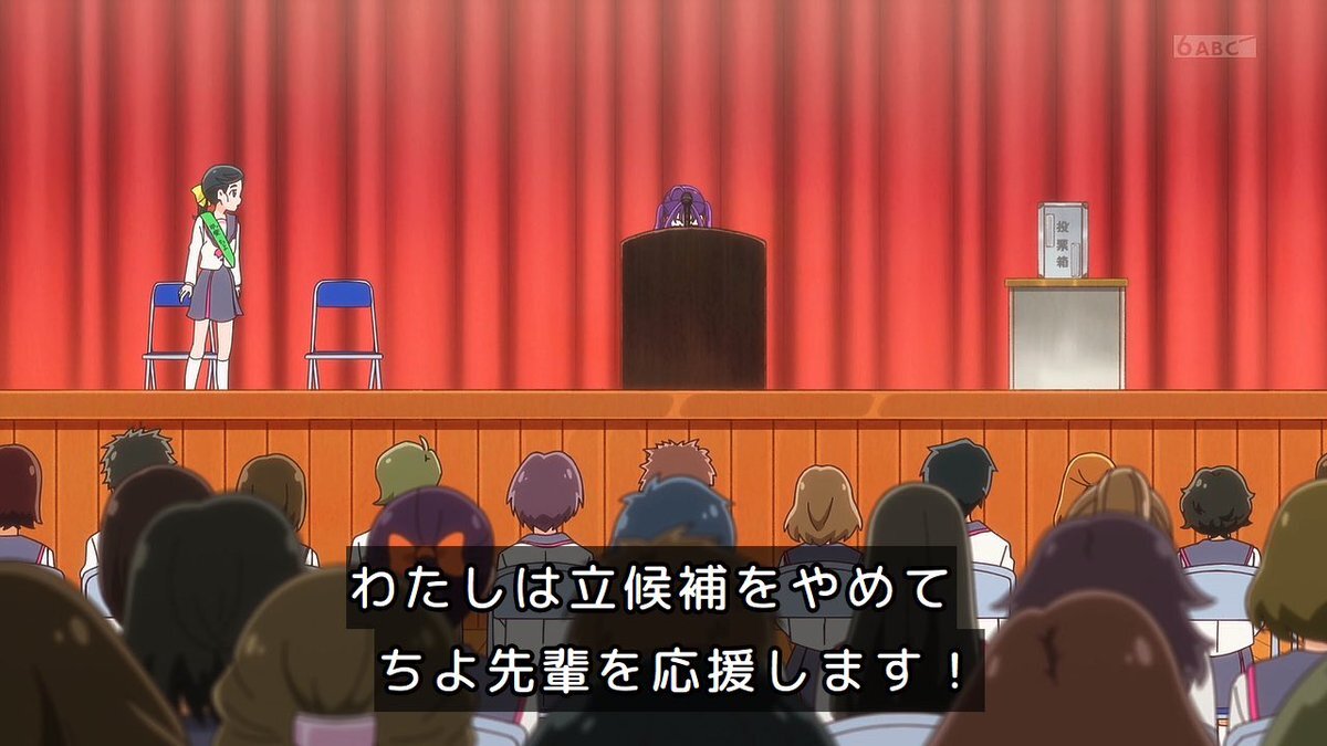 #キミプリ 41話 甲斐ちよが何と生徒会長になったらアイドルプリキュア研究会廃止宣言した💦 こころも生徒会長に立候補しこころはちよがどれだけ尽くしてるかが分かった。こころは学校の為に尽力を尽くそうと決意!演説でいつもの邪魔が入るもこころは戦いの後ちよを生徒会長にしちよも応援する事に! pic.x.com/xmVju89run