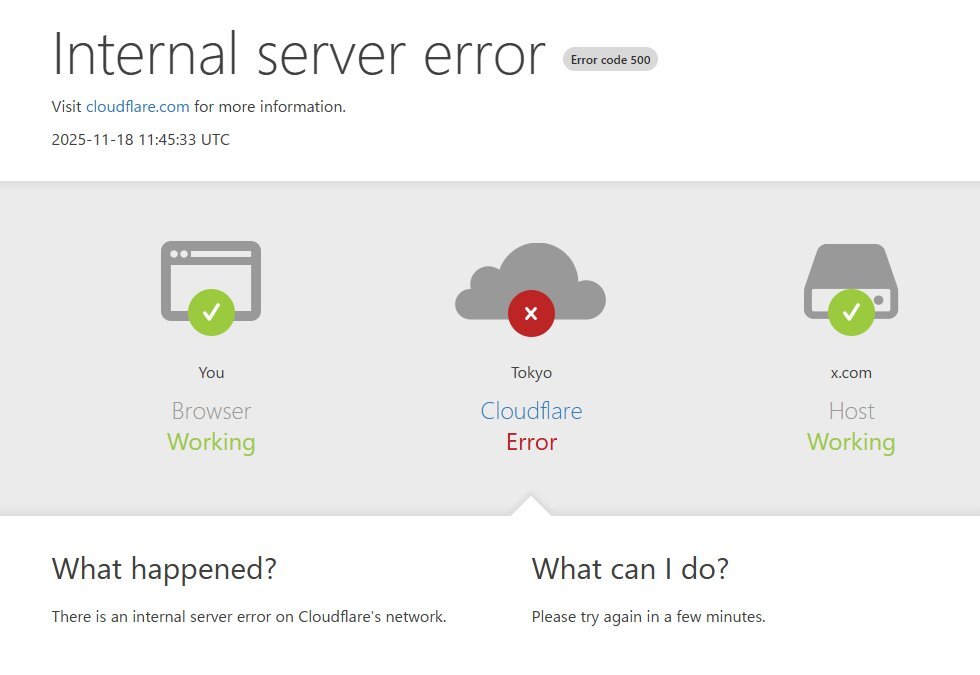 返信先:@ayumi84062233今回はCloudflareのボット対策機能の潜在的なバグが設定変更後にクラッシュ。サイバー攻撃ではないとの事。 Xの場合は強制的にCloudflareを切り離して復旧したらしいです。 ただそうするとXが重くなる。 だからしばらく画像投稿できなかったという流れです。 今は画像投稿復旧してますね✊️