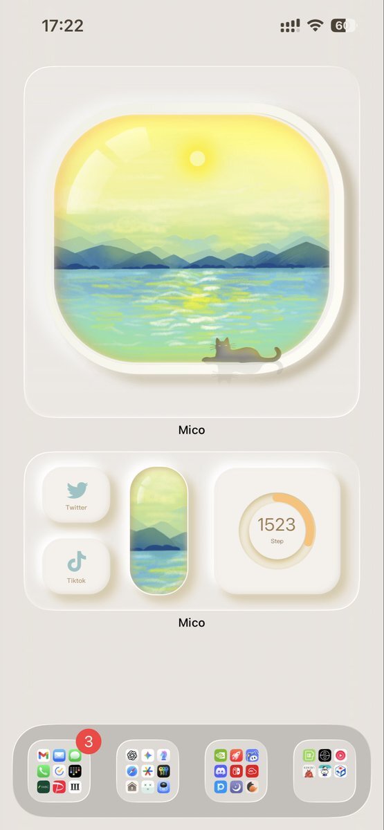 ウィジェット使って変えてみた。ロック画面が暗いのは夜間対策。好きなガジェット動画あげる方が使っていたので珍しく中国発のウィジェットアプリだけど入れた。まあアニメ系の著作権アウトなやつあったけど…… pic.x.com/wCwibIdGg0