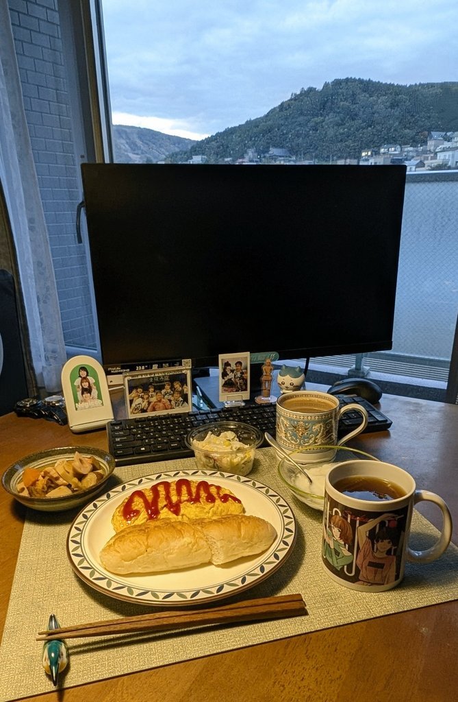 最終勤務日の朝はオムレツプレートでおはようございます🥚🥖☕冷蔵庫の在庫処分でホテルのブッフェのように賑やか😋PC画面が暗いのは本体を昨日本宅に向け送ったから🚛お仕事は指示事項も無く待機長いかも😅フォロワーの皆様もそうで無い皆様も推しの皆様も良い1日になりますように☀️😃#モーニング pic.x.com/rHkcmRqwWI