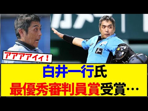 【NPB発表】審判・白井一行氏が最優秀審判員賞、29年目で初受賞 news.livedoor.com/article/detail… 白井氏は独特のストライクコールや、2022年の佐々木朗希へ詰め寄った態度などで注目度が上昇。客席の子供にボールを渡す優しい一面もあり、“名物審判“として知られる。
