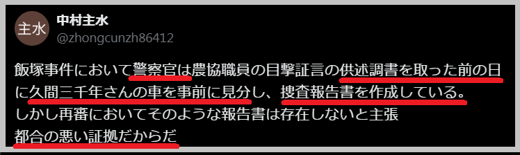 【主水=アホの検証2】 〇因果逆転のアホ詭弁 仮に「報告書が存在した」としても、それが「久間有罪を否定する証拠になるかどうかはまったく別問題。 アホの主張は、「警察が事前に車を確認していた → 目撃証言が後付けで作られた → 捏造」という流れを暗に想定している。 #飯塚事件 #冤罪カルト pic.x.com/rRmbAZNSoR