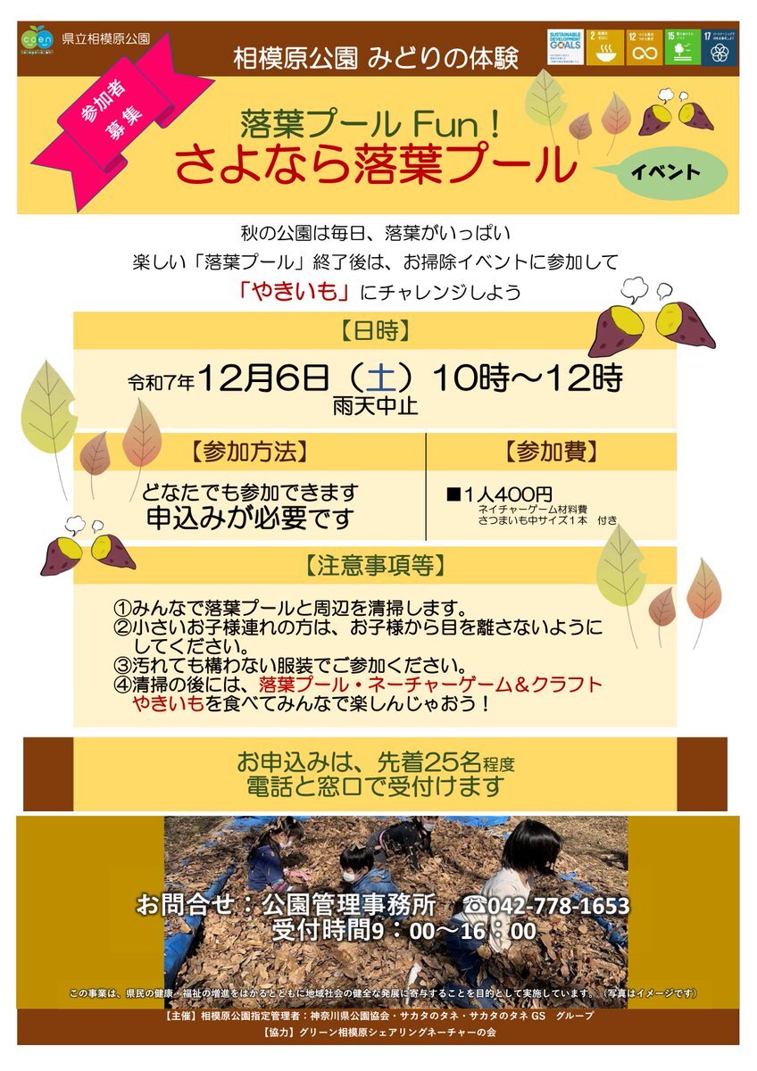 楽しい落葉プール終了後は、お掃除イベントに参加して「やきいも」にチャレンジしよう! 12月6日10時~12時※雨天中止 相模原公園管理事務所近くみどりの街ポケットパーク 先着25名、参加費一人400円、公園管理事務所窓口か電話にて受付します。 詳細URL:sagamiharaivent.blogspot.com/2025/11/blog-p… #やきいも #落葉 #芋 pic.x.com/HkSYZn7I87