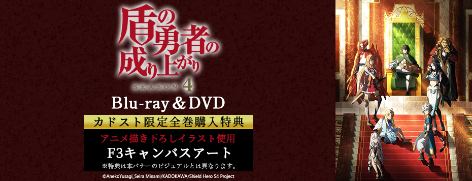 \✨全巻購入特典キャンペーン✨/ TVアニメ「#盾の勇者の成り上がり Season 4」Blu-ray&DVD 全巻を購入で「アニメ描き下ろしイラスト使用F3キャンバスアート」をプレゼント‼ 📅期間:2026/1/31(土) 23:59まで store.kadokawa.co.jp/shop/e/ekanm00… #shieldhero pic.x.com/3kgoepWIj6