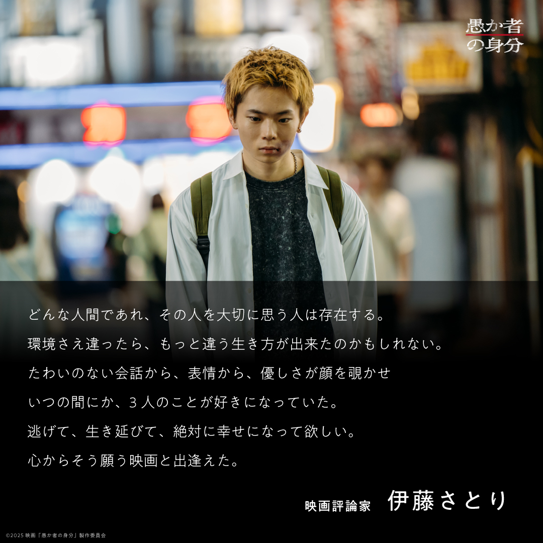 ◢◤映画『愚か者の身分』◢◤ ❬❰ 𝐂𝐨𝐦𝐦𝐞𝐧𝐭 ❱❭ ⠀ ◆ #伊藤さとり さん ⠀(映画評論家) ⠀@SATORIITO  ̄ ̄ ̄ ̄ ̄ ̄ ̄ ̄ ̄ ⠀ 北村匠海×林裕太×綾野剛《魂の競演─》 闇ビジネスの世界から抜け出す 3日間の逃走劇 ━━━━ 🎬10/24(金)公開 #北村匠海 #林裕太 #綾野剛 #山下美月 #矢本悠馬 pic.x.com/mptS7ncDsN