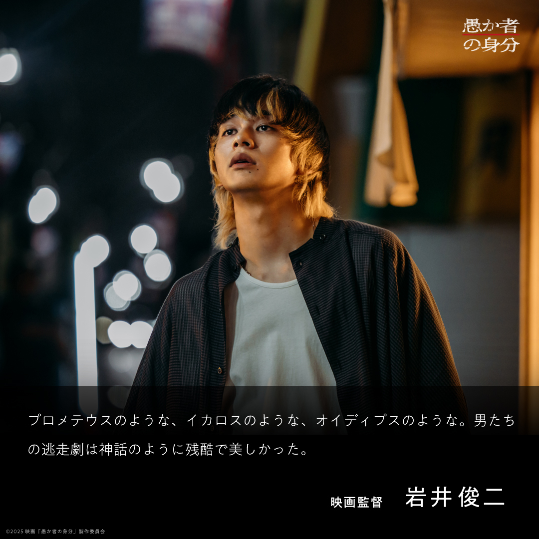 ◢◤映画『愚か者の身分』◢◤ ❬❰ 𝐂𝐨𝐦𝐦𝐞𝐧𝐭 ❱❭ ⠀ ◆ #岩井俊二 さん ⠀(映画監督) ⠀@sindyeye  ̄ ̄ ̄ ̄ ̄ ̄ ̄ ̄ ̄ ⠀ 北村匠海×林裕太×綾野剛《魂の競演─》 闇ビジネスの世界から抜け出す 3日間の逃走劇 ━━━━ 🎬10/24(金)公開 #北村匠海 #林裕太 #綾野剛 #山下美月 #矢本悠馬 pic.x.com/hGEpWD9XBu