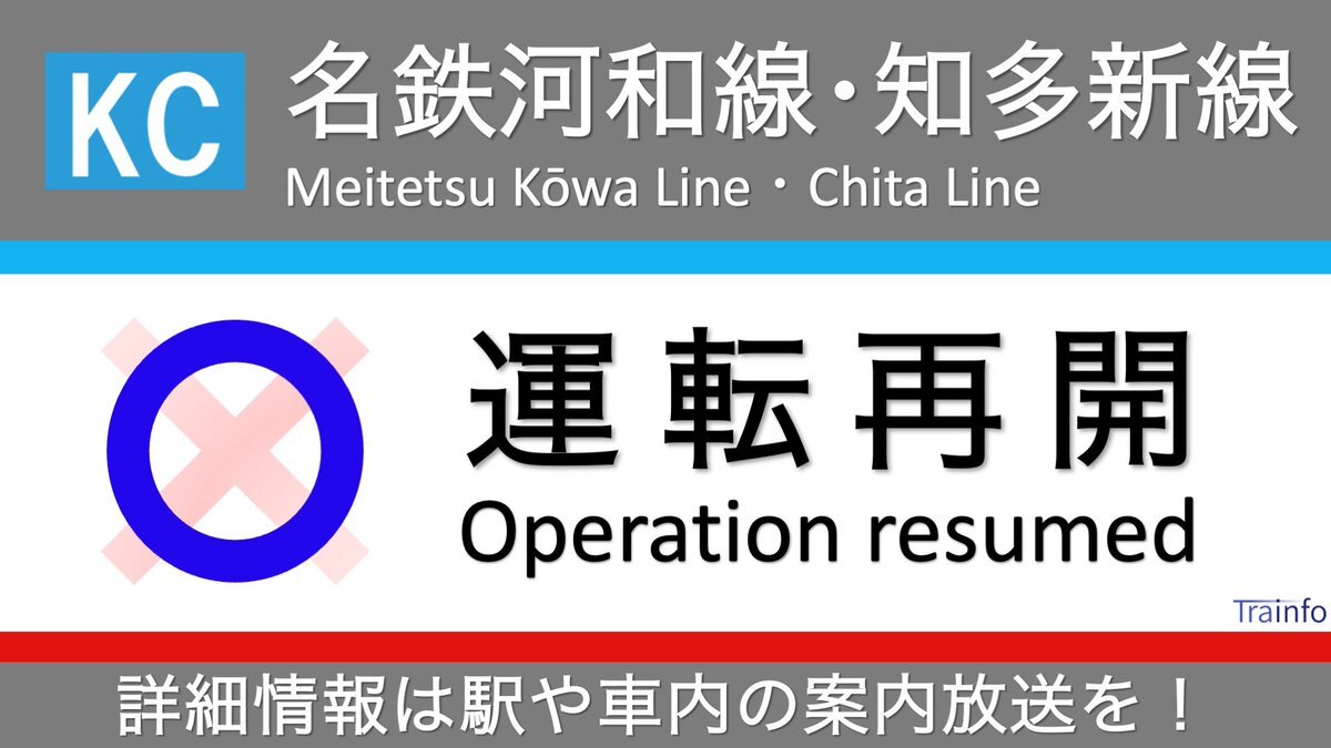 【名鉄河和線・知多新線 上下線 運転再開】 河和線と知多新線は、富貴~上野間での工事車両脱線の影響で、知多半田~河和・富貴~内海の上下線で始発から運転を見合わせていましたが、順次運転を再開しました。[Update 6:47] pic.x.com/1Xjs7oVpkk