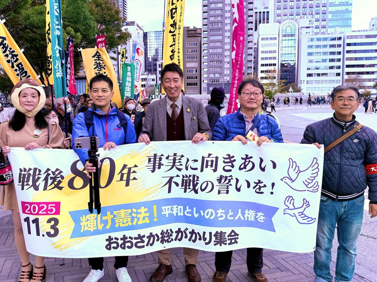 おおさか総がかり集会には尾辻かな子衆院議員(立民)、大椿ゆうこ前参院議員(社民)、たつみコータロー衆院議員(共産)、大石あきこ衆院議員(れいわ)が参加してスピーチ。京都大学の高山佳奈子教授がソースを手にしていたのは、講演の中で情報のソース(発信源)を確認することの大切さを訴えるためでした😊 pic.x.com/WBT58hbVIh
