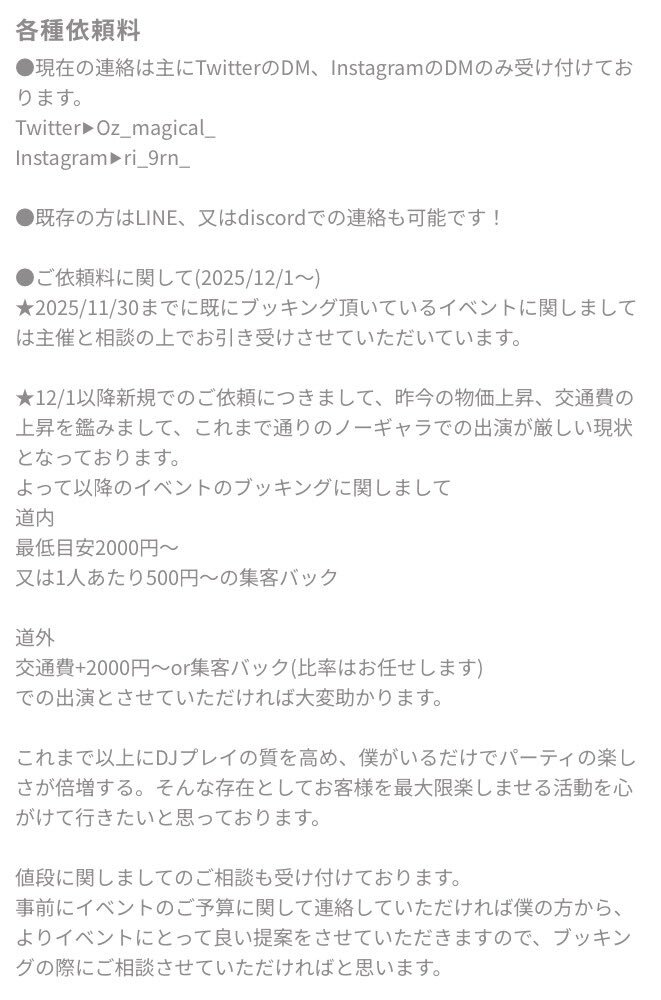 曲買って電車も無い田舎からDJしに街通ってたらついに貯金が底を尽きてしまいました𓂃 💸 交通費上昇←これが本当にキツくてついにDJも有償依頼をベースにお仕事として活動させていただくことになりました…🥲 lit.link/ri_9rn_ozmagic… ↑ こちらのリンクに全文載せております。精一杯頑張ります。