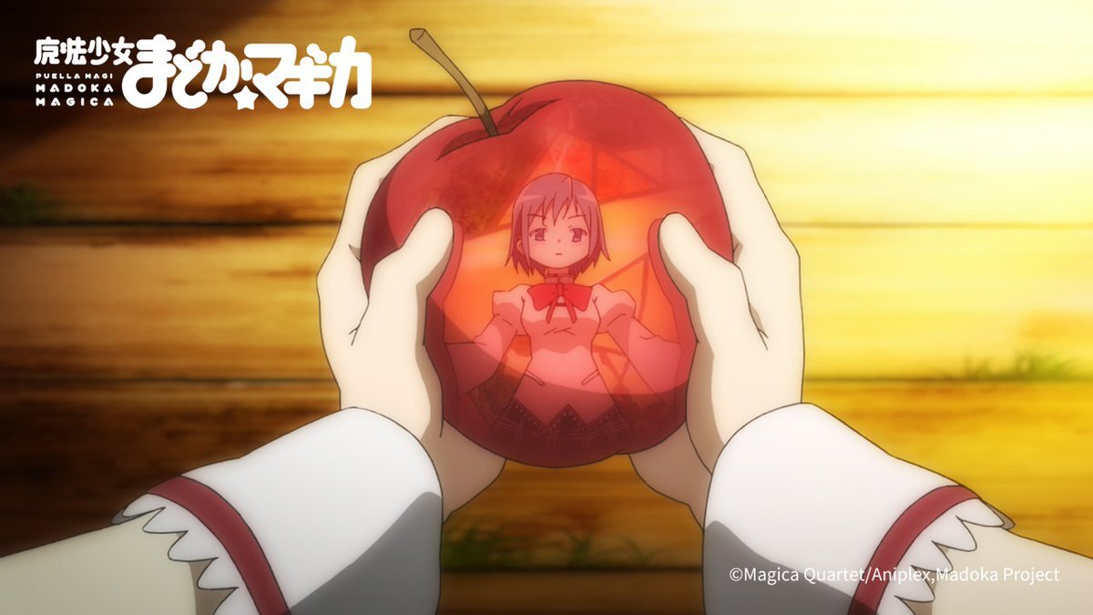 ここでのりんごはキリスト教における禁断の果実。 「自分のために好きに生きよう」という誘惑をさやかは受け取らなかった。 りんごは誘惑、罪などの意味のほかに知恵の象徴でもあるので、杏子が教えてくれた「魔法少女としての上手な生き方」を受け取らなかったともいえる。 #まどかマギカ #まどマギ pic.x.com/BrvJvecjfN