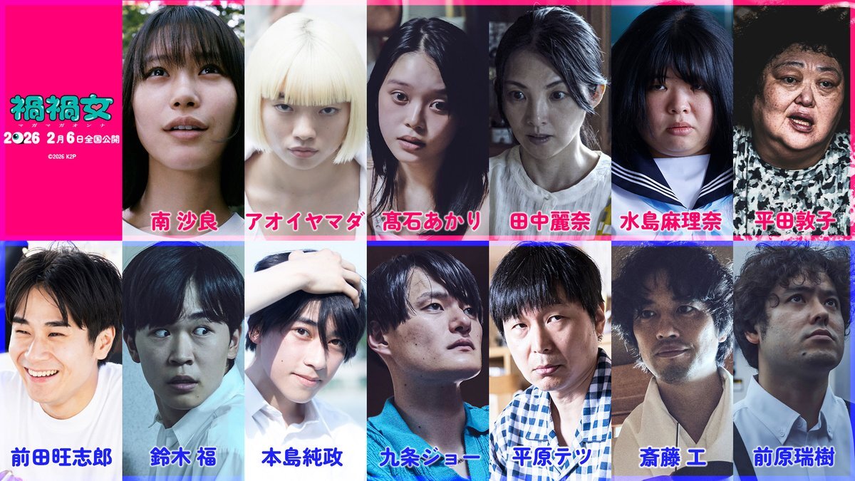 🩷❤️🧡💛 映画『#禍禍女』キャスト公開❣️ 💚💙💜🩷 🩷#南沙良 💋#前田旺志郎 🩷#アオイヤマダ 💋#髙石あかり 🩷#九条ジョー 💋#鈴木福 🩷#前原瑞樹 💋#平田敦子 🩷#平原テツ 💋#水島麻理奈 🩷#本島純政 💋#斎藤工 🩷#田中麗奈 豪華キャストを一挙公開‼️💖 ぜひお楽しみに✨🌟⭐️😘😘😘