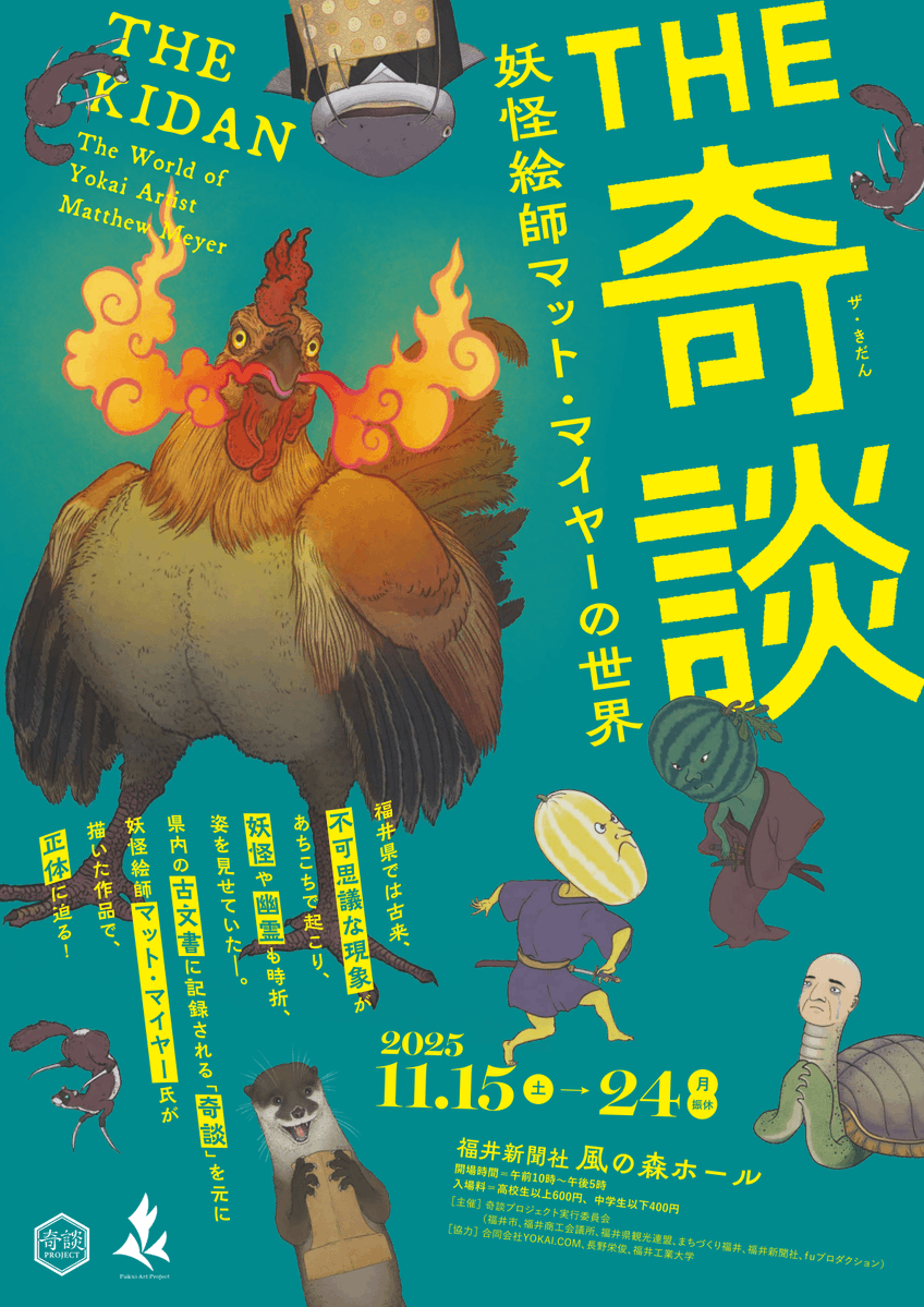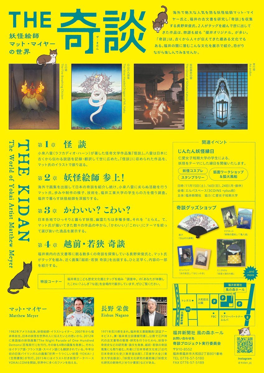 「THE奇談 妖怪絵師マット・マイヤーの世界」 福井在住の妖怪絵師マット・マイヤー氏の作品や制作工程の紹介など、奇談文化を知る・感じる・関わることができる展覧会です。 📅11/15~11/24 📍福井新聞社 風の森ホール 詳細はチラシをご覧ください。 instagram.com/kidan_pj/ #アートプロジェクト pic.x.com/oiEhrExpWL