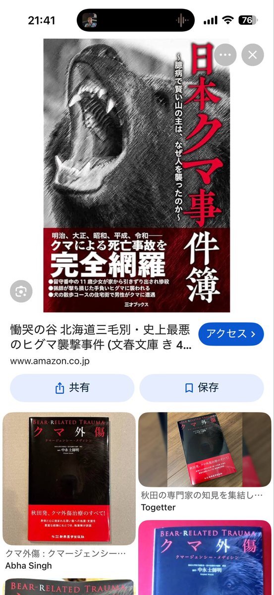 秋田県のクマ被害がやばいらしい。 ちょっと前までは熊被害と言えば「三毛別羆事件」や「福岡大学ワンダーフォーゲル部ヒグマ事件」とひと昔の事件だったのに、最近海外の「生きたまま食われながら電話で遺言残した人」の話が出てきてる…😰