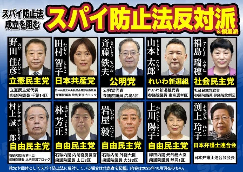 高市首相、スパイ防止法制定に意欲!共産小池晃「私や福島瑞穂さん監視される」超党派勉強会で懸念の声相次ぐ!スパイ防止法に反対するのはスパイだけ! deliciousicecoffee.jp/blog-entry-988… 敗戦で失ったものを、国際標準に戻すだけの話。