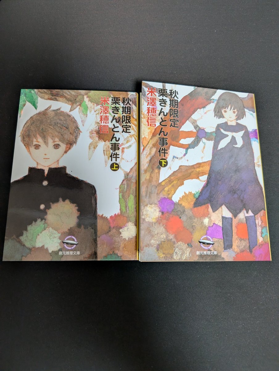 返信先:@mwjsince1947米澤穂信/『秋期限定栗きんとん事件 上(下)』 今年の秋に読む為に、よく見える本棚の 位置に飾ってあります✨ 問題は上下読み切れる か不安(バタバタしているので)がありますっ。 #秋に読みたいミステリー #秋期限定栗きんとん事件