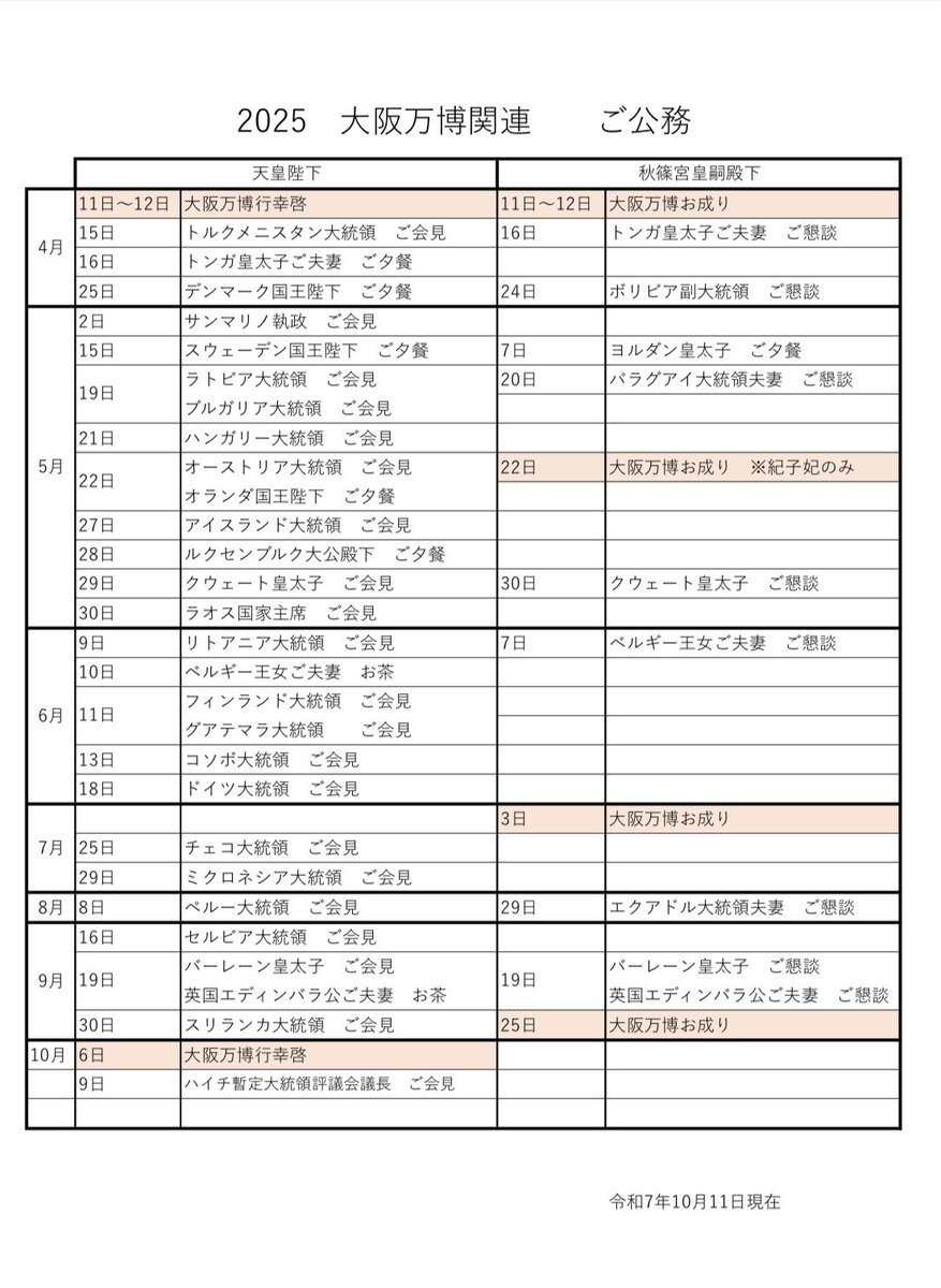返信先:@Kasane2017日程表を見てから、コメントして欲しいね! 両陛下のご静養は、スケジュール通り。 それより宮家扱いの秋篠宮家の静養は、報告しなくていいようですので、秘密に静養してます。 それと、国民にも呆れられ、海外の要人にも避けられる皇族では、皇后は務まらない。 名ばかりの万博総裁ではね。 pic.x.com/lqwFDIDlYJ