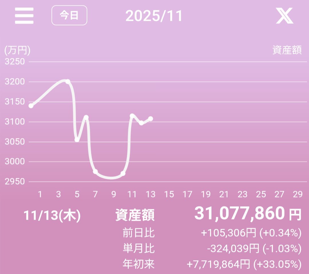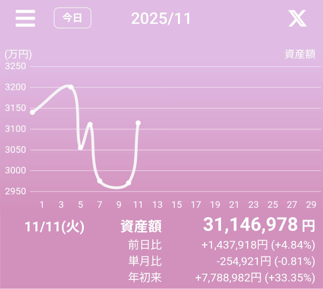 / おはひよーっ⛄✨ \ NASDAQ100は前日比+2.20%、ドル円は+0.44%となりました!100日移動平均線乖離率は+7.09%です。 政府閉鎖が近日中に解除される期待が高まり、株価は上昇、為替は円安に進みました✨️ 前月比でもほぼプラマイゼロまで戻ってこれそうです😊 pic.x.com/yxUQD1ho4C