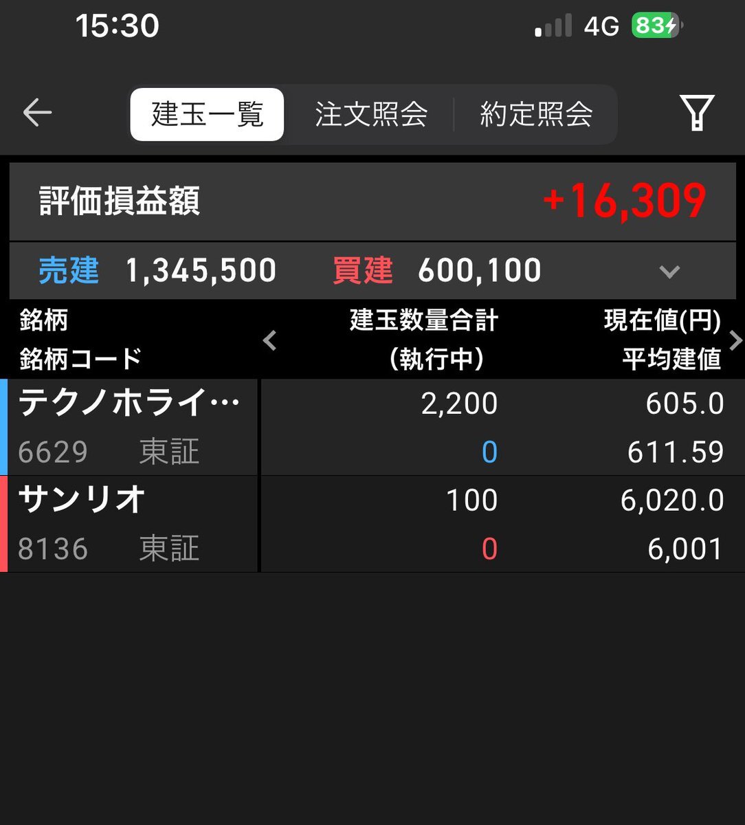因みにサンリオトレードの敗因はエントリーした事ではなく逆張りするにあたってのエントリーが早過ぎた事。 ハイボラ銘柄で逆張りを狙う場合は他の銘柄よりも移動平均線乖離率が高くなってから反発が普通。 勝率上げるならリスク/リワードは落ちるけど陽線だしてからのエントリーが無難な模様。