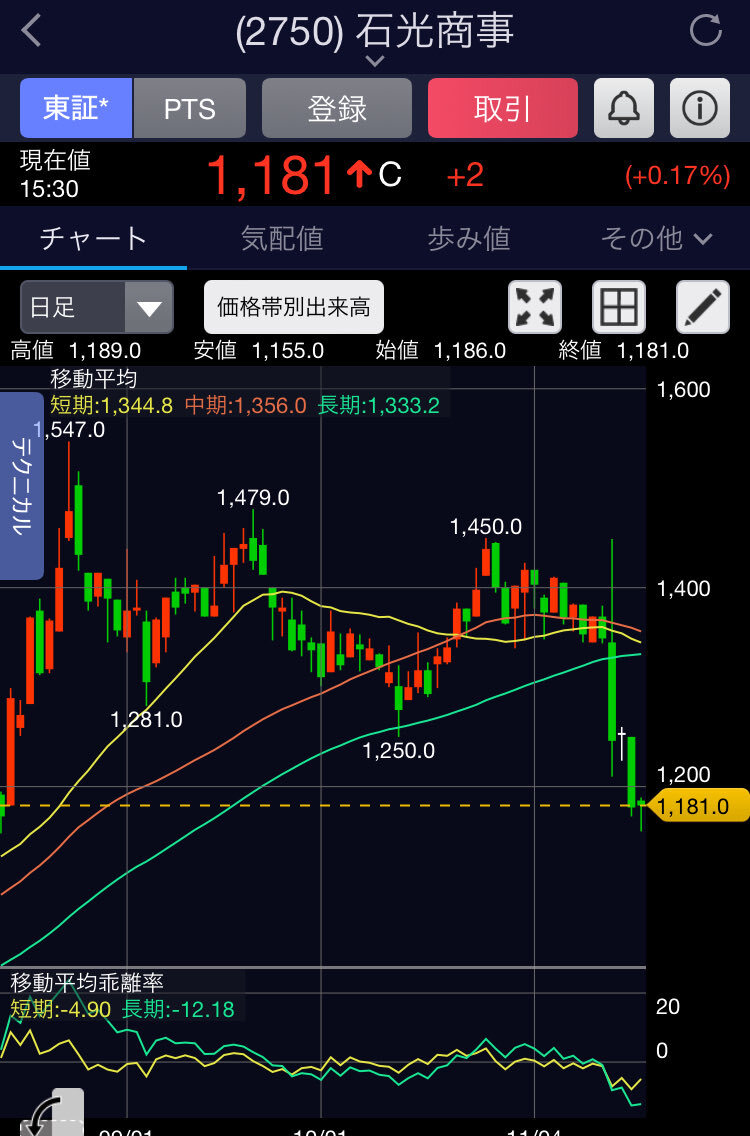 今日の1株投資 【買い】 寿スピリッツ🍪 石光商事☕️ コメ兵HD💰 味の素🥟 KHネオケム🏭 加藤製作所💃 ヤマハ発動機🏍️ ヒマラヤ⛷️ 東京メトロ🚇 NTT☎️ 燦HD😢 各1株 【売り】 アステラス製薬💊 ワークマン👷 各1株 25日移動平均線乖離率が-10%を割り込んだ石光商事と加藤製作所に新規参入です🫡 pic.x.com/prLbFKBm4o